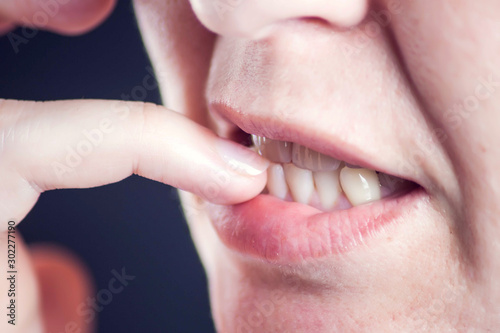 Woman nibbles nails when feels stress or nervous. People, bad habits and hygiene concept