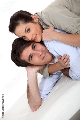 Woman on man's back