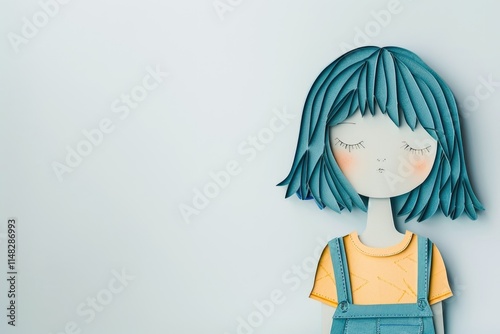 woman on white background. paper cut style. dreamer. denim overalls. farmer. volunteer. student. kid