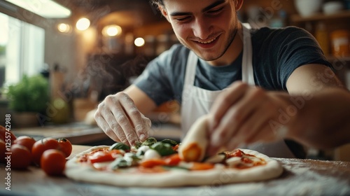 woman preparing a raw pizza