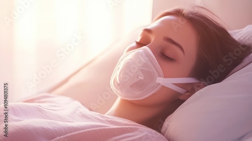 Woman Resting in Bed with Protective Face Mask