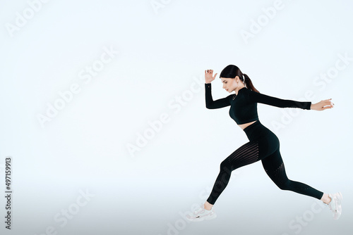 Woman runner in silhouette on isolated background. Dynamic movement. Side view