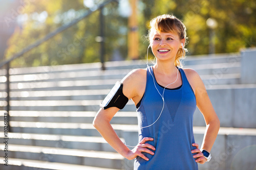 Woman running in urban area