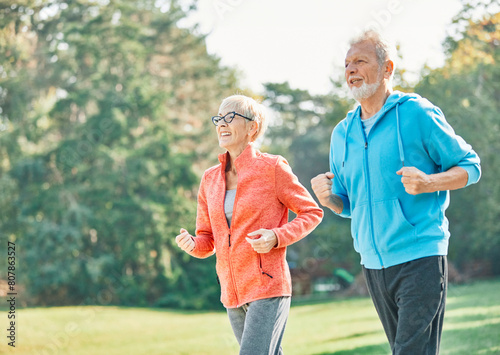 woman senior man outdoor running couple lifestyle sport smiling together jogging healthy nature fit happy active retirement exercise fitness run