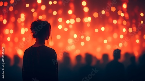 Woman Silhouetted Against a Red Bokeh Background