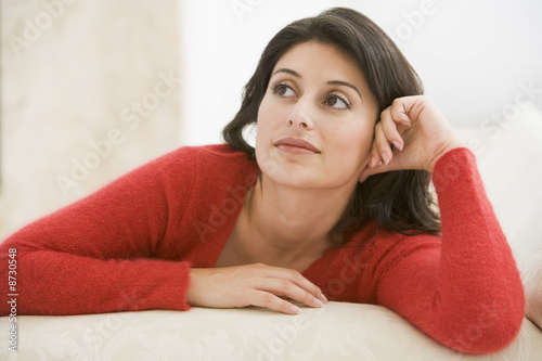 Woman sitting in living room