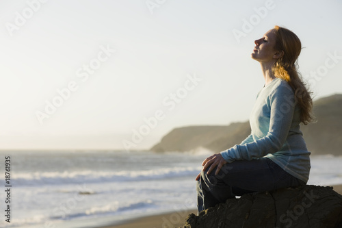 Woman Sitting on Rock