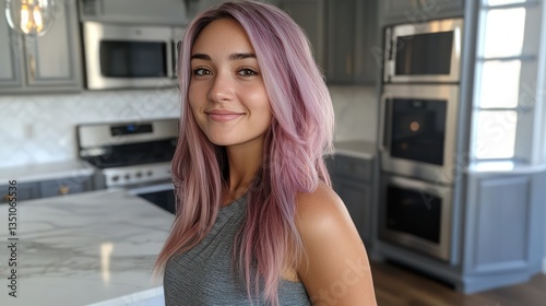 Woman smiling kitchen modern home interior