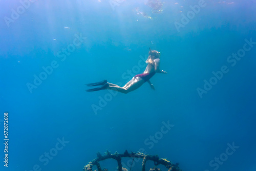Woman snorkeling in Indian Ocean, Permuteran, Bali, Indonesia