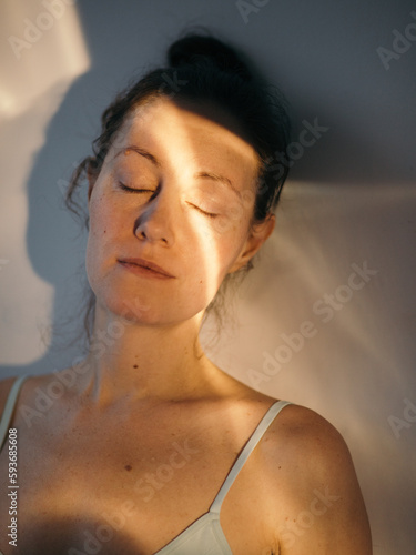 Woman sun portrait with closed eyes