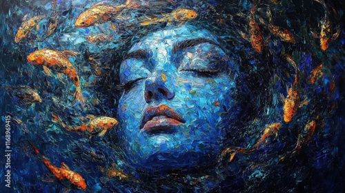 Woman Surrounded by Koi Fish