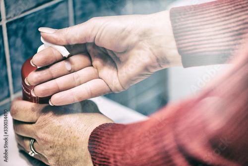 Woman thoroughly washing hands at home. Coronavirus prevention against virus outbreak