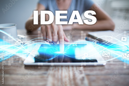 Woman using tablet pc, pressing on virtual screen and selecting ideas.