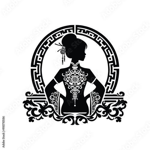 woman wear traditional fashion Chinese cheongsam with intricate embroidery