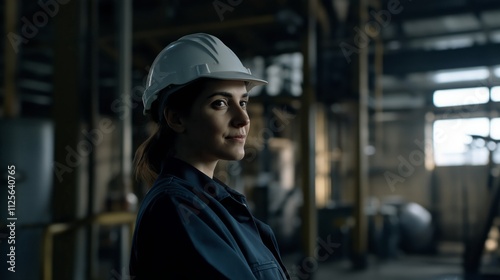 Woman wearing a hard hat and a blue jacket