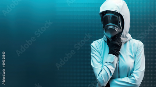 Woman wearing futuristic clothes, fashion model in futuristic looking style costume and mask, Generative AI