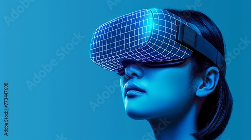 Woman wearing virtual reality goggles. Virtual reality headset. Concept of technology and cyberspace. Illustration for cover, card, postcard, interior design, banner, poster, brochure or presentation.