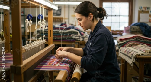 Woman Weaving Textiles in Studio