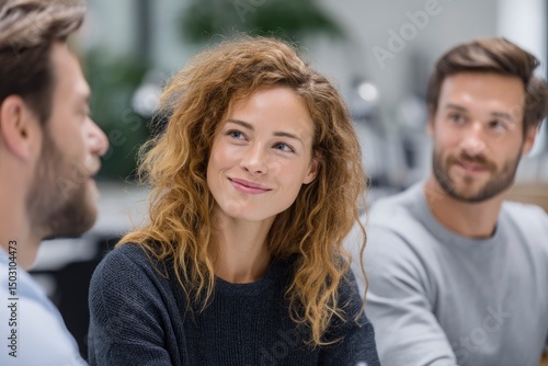 Woman with Curly Hair in Thoughtful Pose: A Serene Portrait