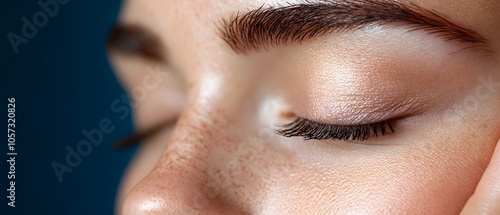 Woman with eyes closed gently massaging the bridge of her nose seeking relief from eye strain blurry vision and fatigue Concept of self care wellness and healthcare