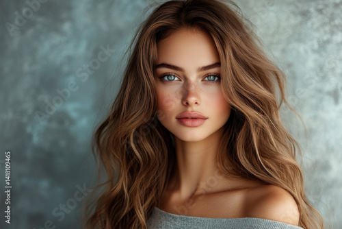 Woman with long hair and blue eyes gazes at the sunset, silhouetted against a vibrant orange sky.