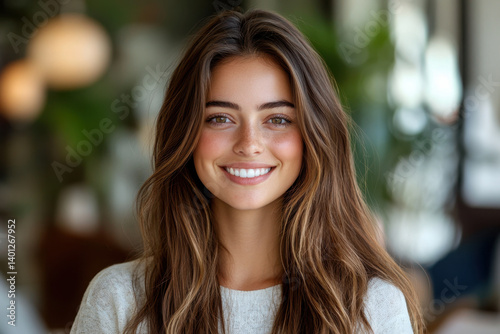 Woman with long hair in white sweater admiring sunset on a serene beach, seagulls flying overhead.