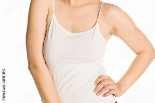 Woman with sleevless white shir