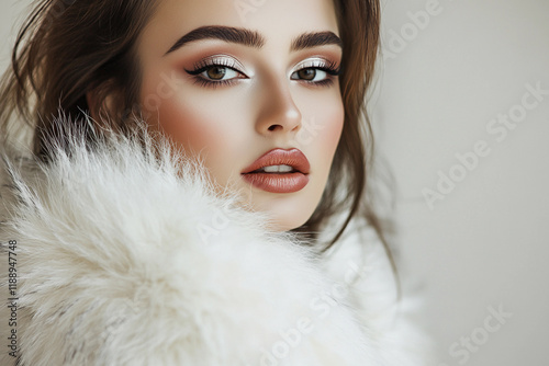 Woman with striking makeup in luxurious fur coat
