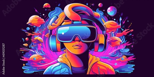 Woman with VR Headset Exploring the Metaverse, Virtual Reality Glasses of Modern Technology. Generative Ai