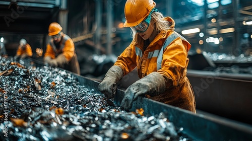 Woman Working in Metal Recycling Facility