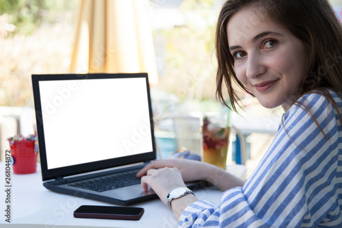 woman working on her laptop at cafe