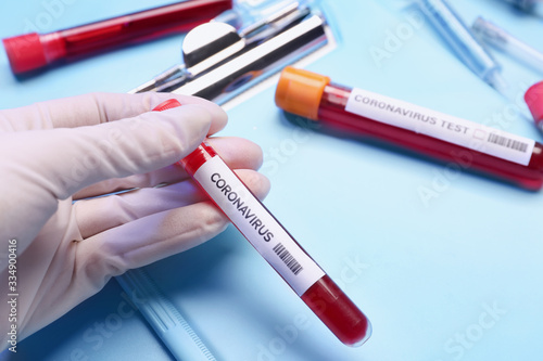 Woman working with blood samples in laboratory. Concept of coronavirus epidemic