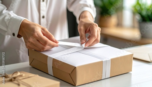 Woman Wrapping A Gift Box With Ribbon