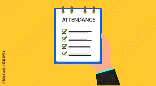 woman's hand Attendance board with attendance checklist. Survey, survey, board, task list. Vector Design Eps 10.