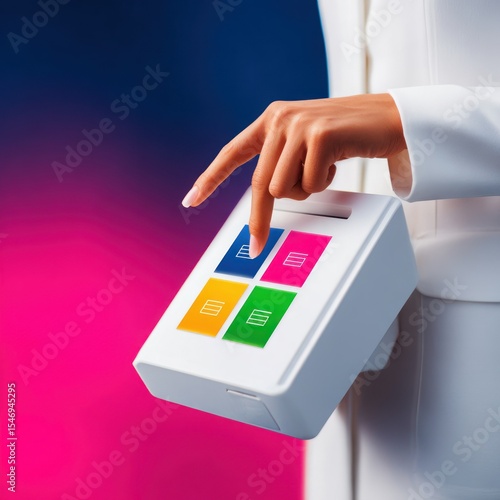 Woman's Hand Interacting with Futuristic Colorful Payment Device