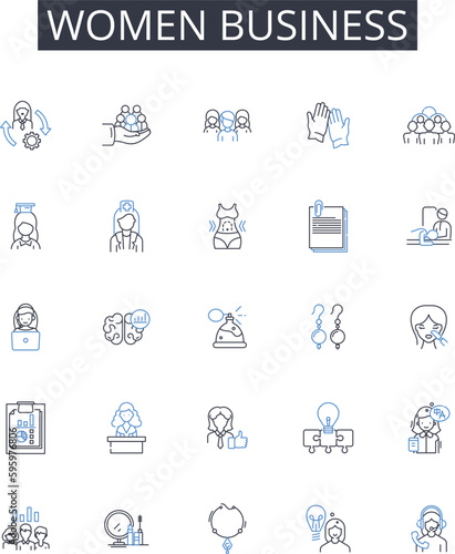 Women business line icons collection. Female entrepreneurship, Ladies' commerce, Women's enterprises, Feminine startups, Woman-led ventures, Female-owned businesses, Lady entrepreneurs vector and