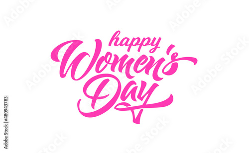 Women Day greeting card text calligraphy and hearts. Lettering for 8 March Woman holiday premium white background.