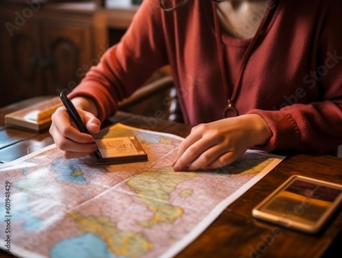 Women drawing locating map with pen. Generative ai