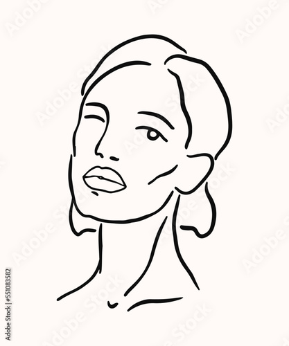 Women face illustration. Hand drawn art in ink line style.