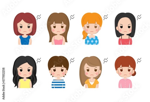 Women, girl, cute, angry, sad, complaining, facial expression, manga, cute illustration, set