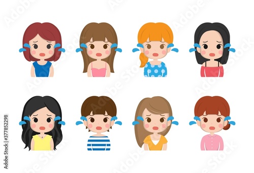Women, girl, cute, angry, sad, complaining, facial expression, manga, cute illustration, set