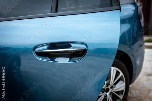 Women hand opening the car door.