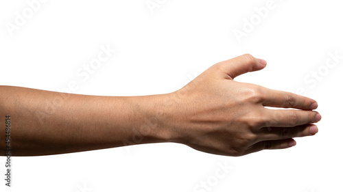 Women hand reach and ready to help or receive. Gesture isolated on white background.