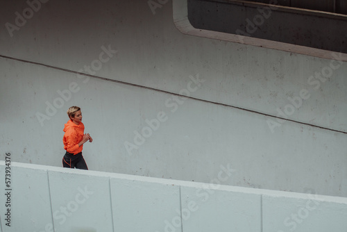 Women in sports clothes running in a modern urban environment. The concept of a sporty and healthy lifestyle