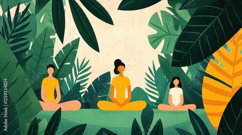 Women Meditating in Lush Green Jungle Surrounded by Tropical Plants