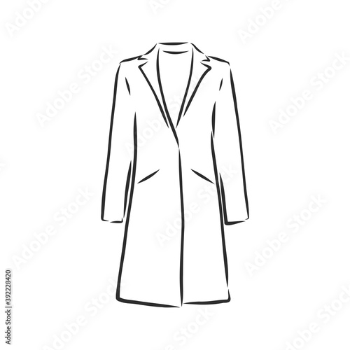 Women's coat, Fashion flat sketch. Technical drawing women's coat, vector sketch illustration