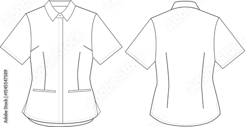 Women's Shirt Front and Back Illustration, Short Sleeve Shirt with Pockets and Button-Up