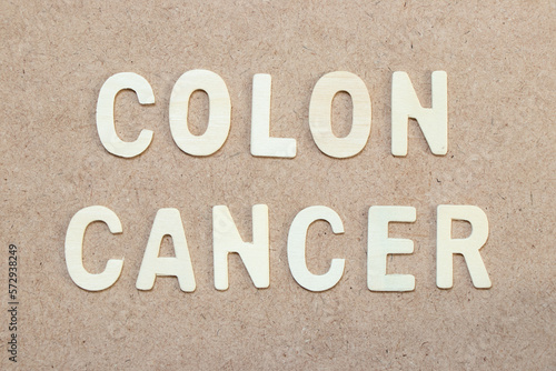 Wood alphabet letter in word colon cancer on wood background