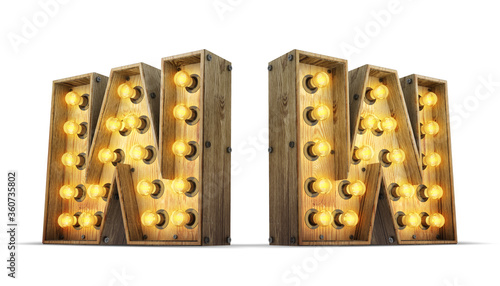 Wood alphabet light bulb 3d rendering illustration with clipping paths.
