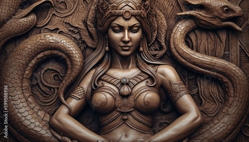 Wood carving art, dragon, lion, rabbit, forest wood carving patterns. Generative Ai